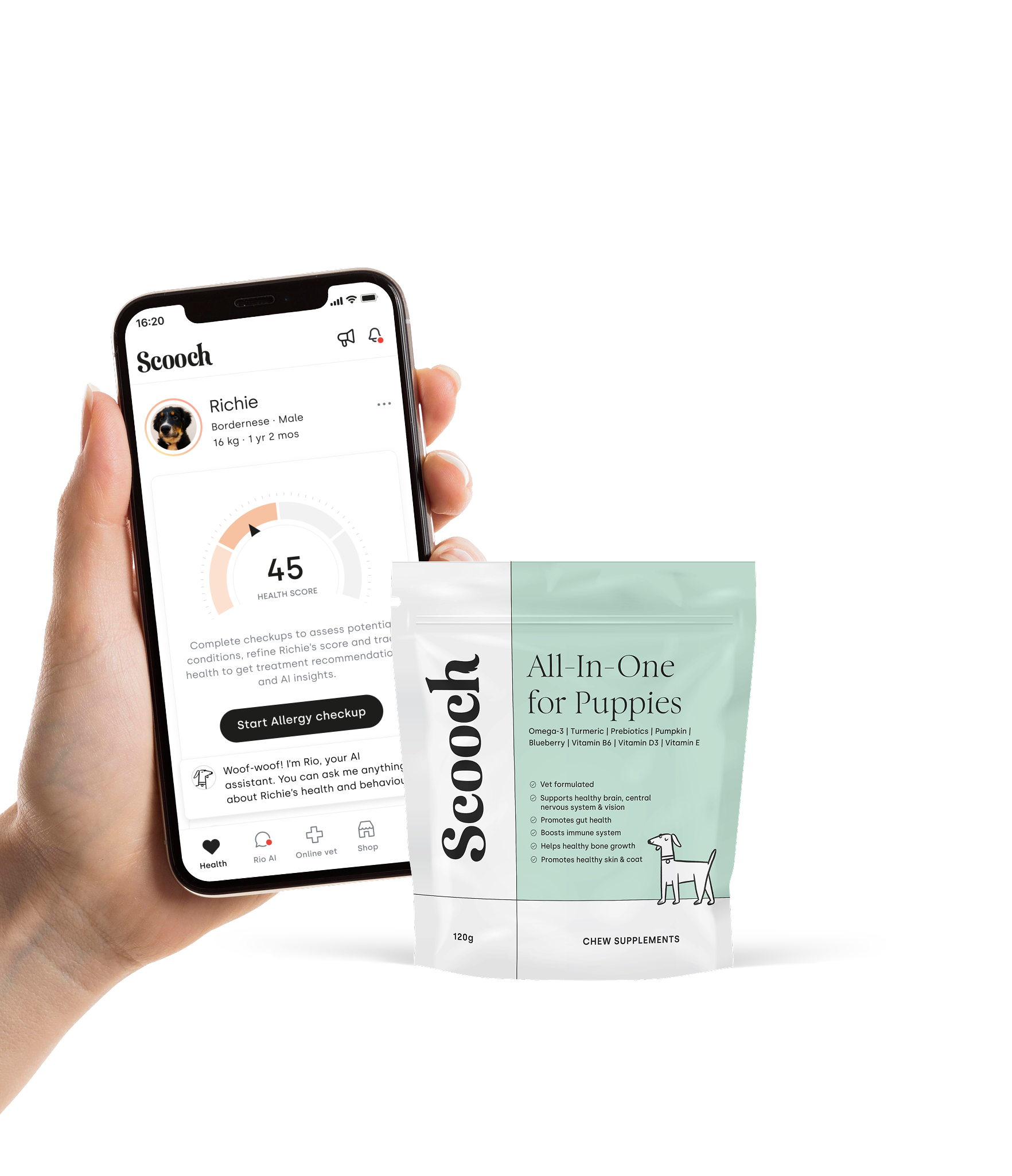 You can give your puppy the best start in life thanks to natural, vet-formulated products with inclusive access to Scooch Health. The award-winning app to level-up your pup’s health.