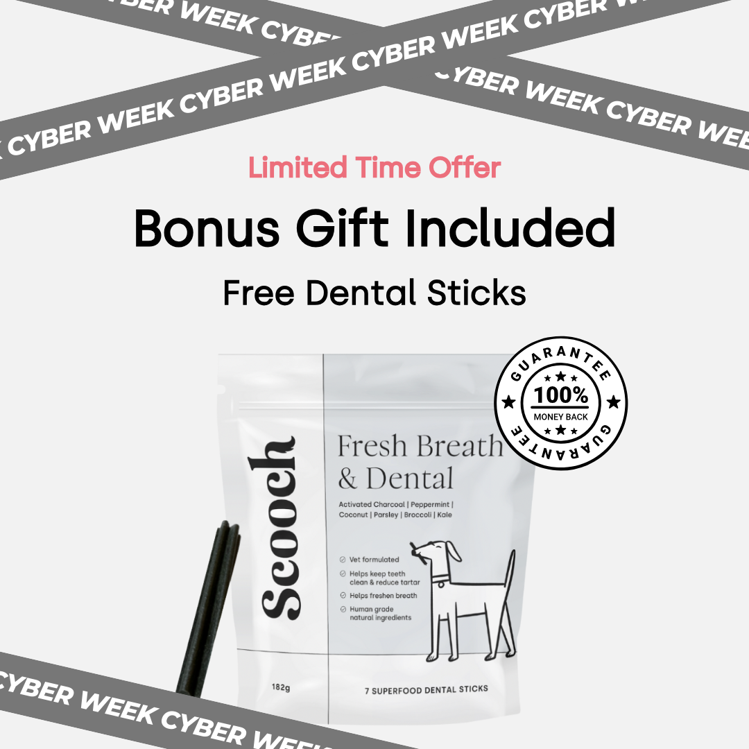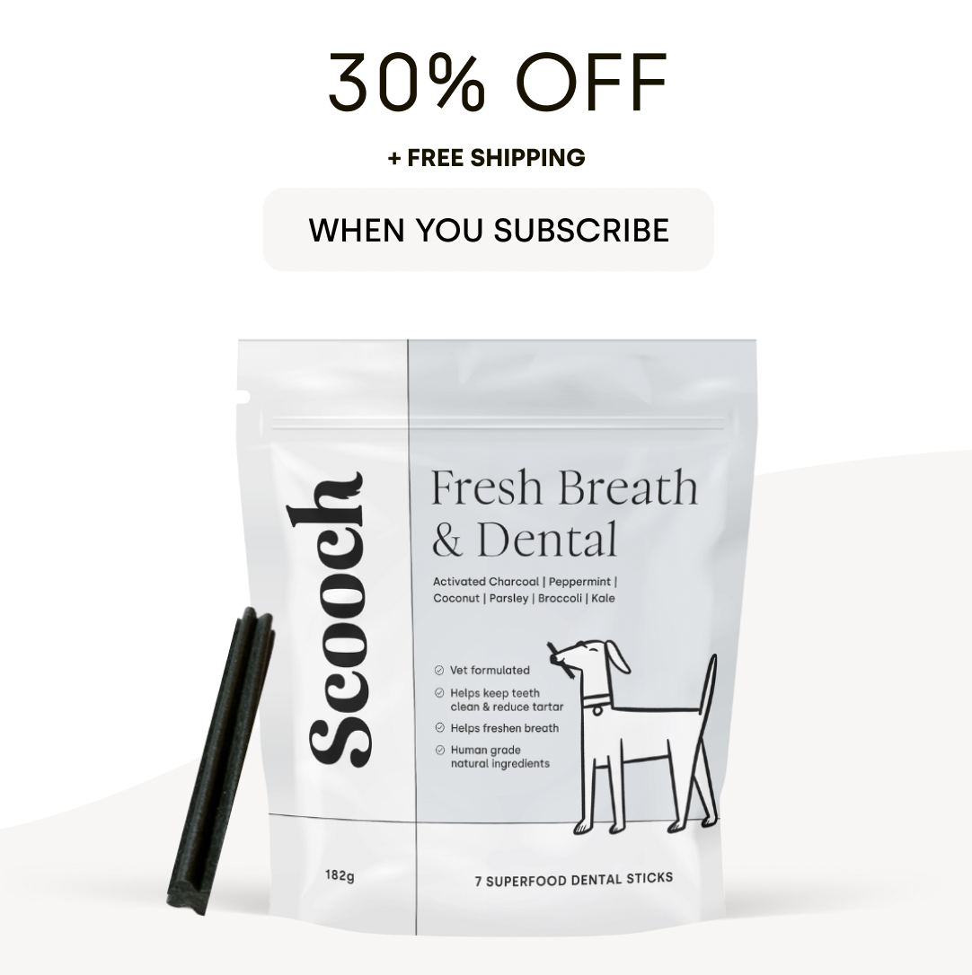 Scooch’s Dental sticks have been vet formulated to provide a clinically proven blend of ingredients to help make stinky breath and dental issues a thing of the past! From activated charcoal for tooth whitening, through to kale, broccoli and parsley for anti-microbial properties to eliminate harmful bacteria and keep teeth clean.The ingredients in these tasty daily chews are 100% natural, human grade, hypoallergenic and low fat to provide the best quality for your dog.