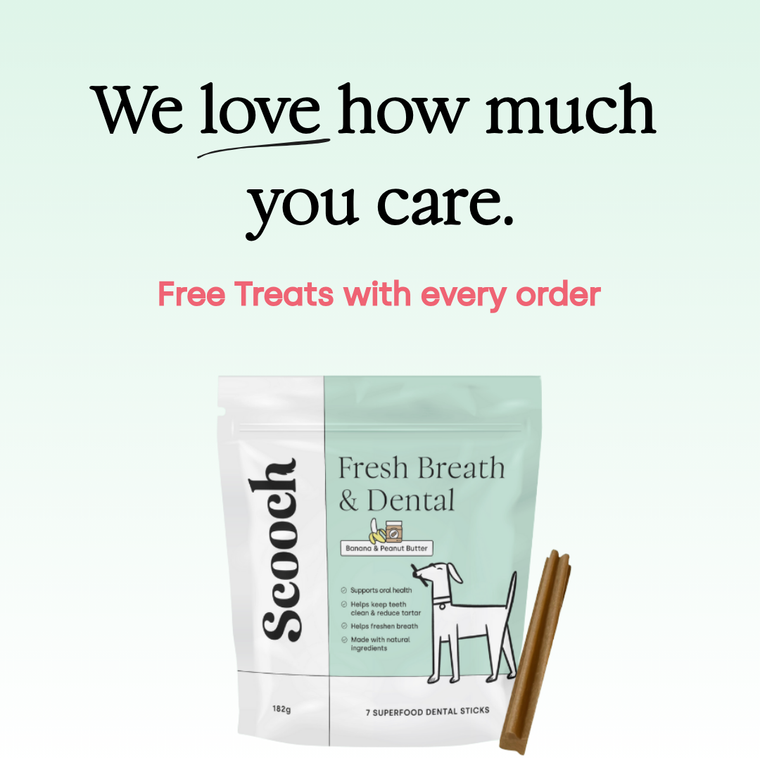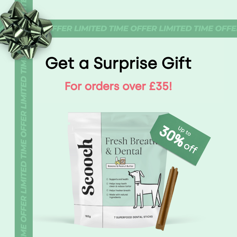 Scooch’s Dental sticks have been vet formulated to provide a clinically proven blend of ingredients to help make stinky breath and dental issues a thing of the past! From activated charcoal for tooth whitening, through to kale, broccoli and parsley for anti-microbial properties to eliminate harmful bacteria and keep teeth clean.