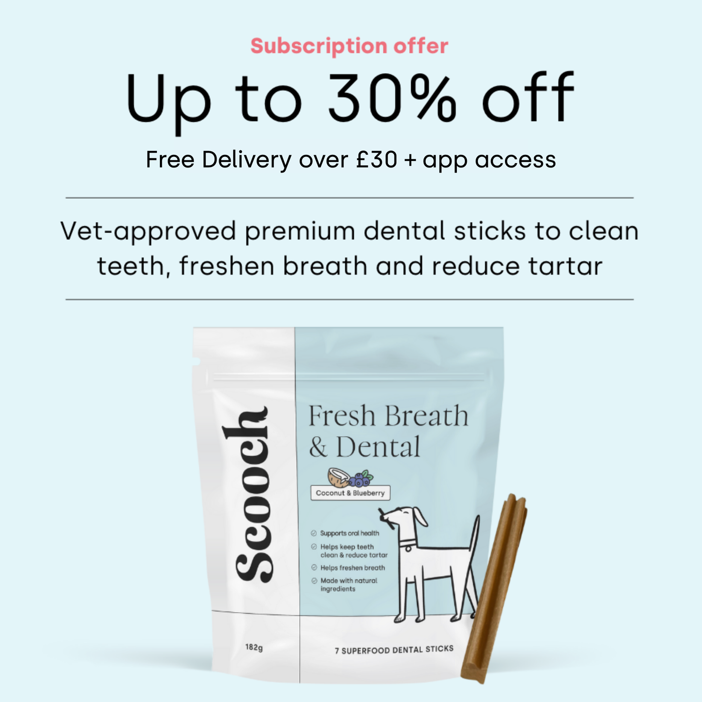 Dental sticks are one of the recommended ways to mechanically keep your dogs teeth clean in between brushing, which is why we recommend long-term use. To help you stay consistent, we offer subscriptions of up to 30% off, plus free access to our award-winning app to support you and your dog with 24/7 video vets, health tracking, rewards and so much more.