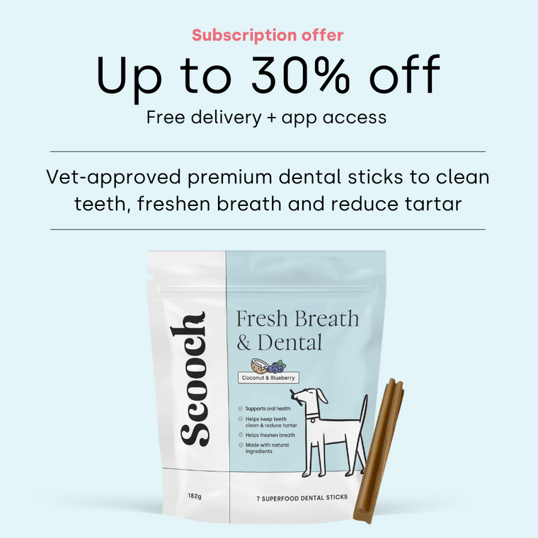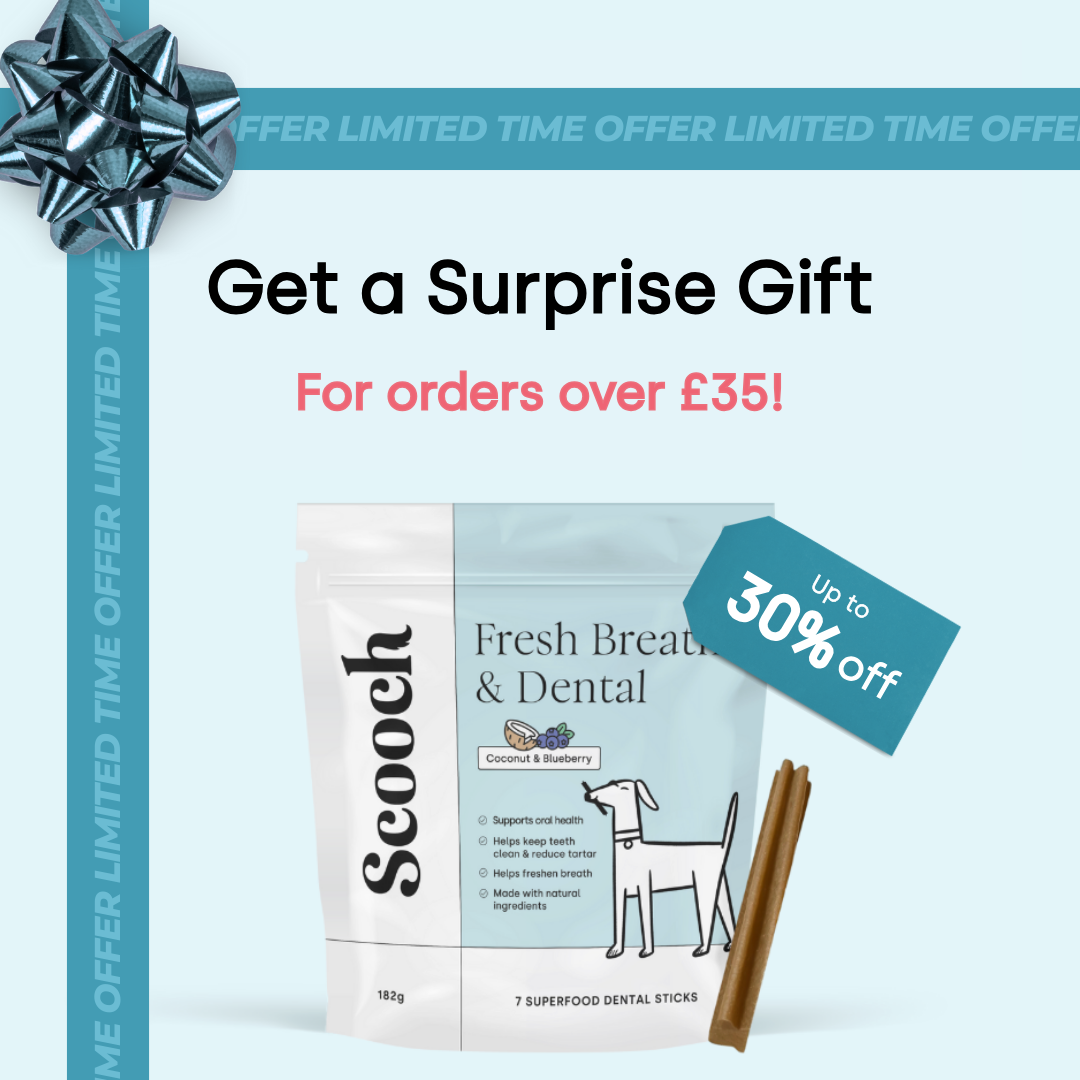 Scooch’s Dental sticks have been vet formulated to provide a clinically proven blend of ingredients to help make stinky breath and dental issues a thing of the past! From activated charcoal for tooth whitening, through to kale, broccoli and parsley for anti-microbial properties to eliminate harmful bacteria and keep teeth clean.