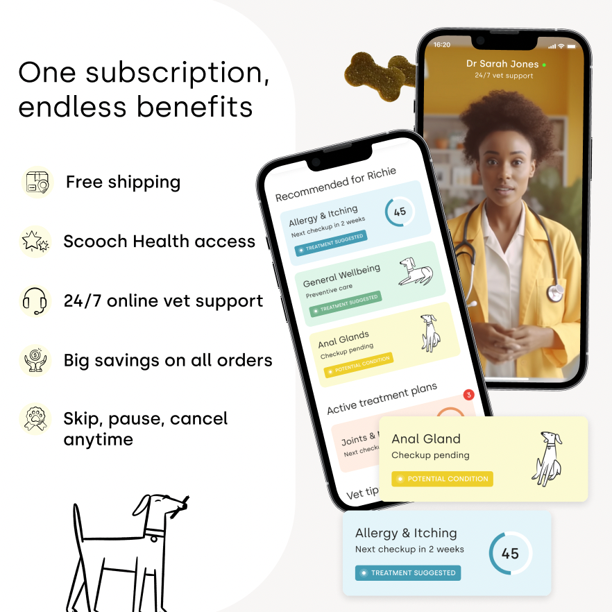 Why subscribeDental sticks are one of the recommended ways to mechanically keep your dogs teeth clean in between brushing, which is why we recommend long-term use. To help you stay consistent, we offer subscriptions of up to 30% off, plus free access to our award-winning app to support you and your dog with 24/7 video vets, health tracking, rewards and so much more.We wanted to take that peace of mind to a whole new level, which is why you’ll also unlock £1,000 worth of free accident & injury insurance for your dog when your subscription is above £25 in value - yes you can mix and match any products!