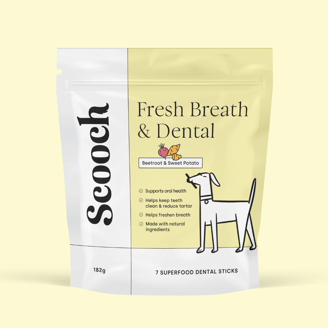 Scooch’s Dental sticks have been vet formulated to provide a clinically proven blend of ingredients to help make stinky breath and dental issues a thing of the past! From activated charcoal for tooth whitening, through to kale, broccoli and parsley for anti-microbial properties to eliminate harmful bacteria and keep teeth clean.