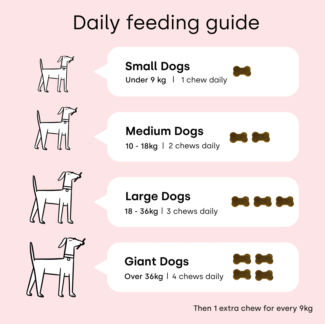 As all dogs are individual, so too are their results. But many dogs see changes from our chews kicking in after just one week of use! Others can take anywhere between 1-6 month to see the full effects of the supplement.