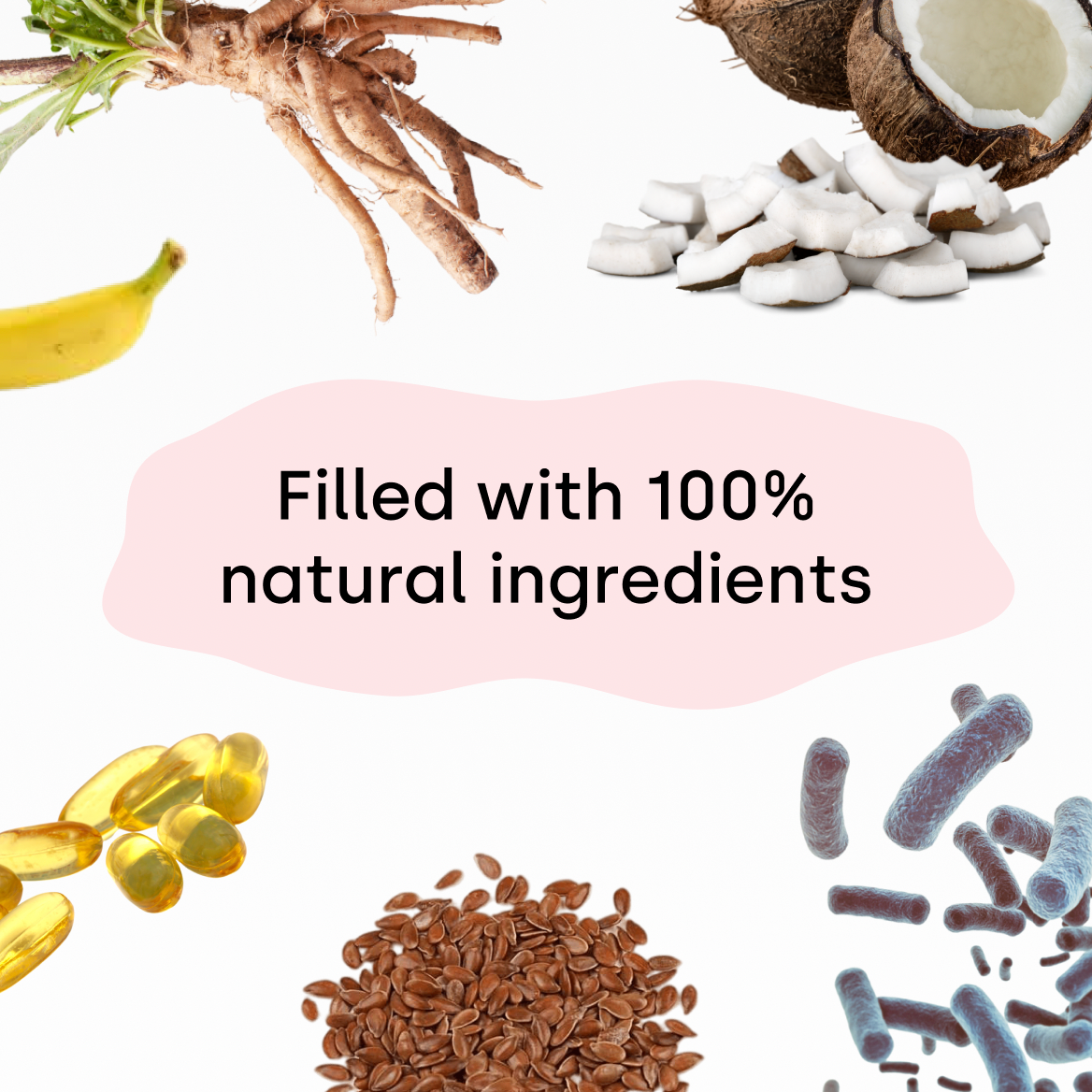 Packed with Probiotics, Prebiotics and Postbiotics to boosts beneficial bacteria, soothe sensitive stomachs & aid overall digestion.