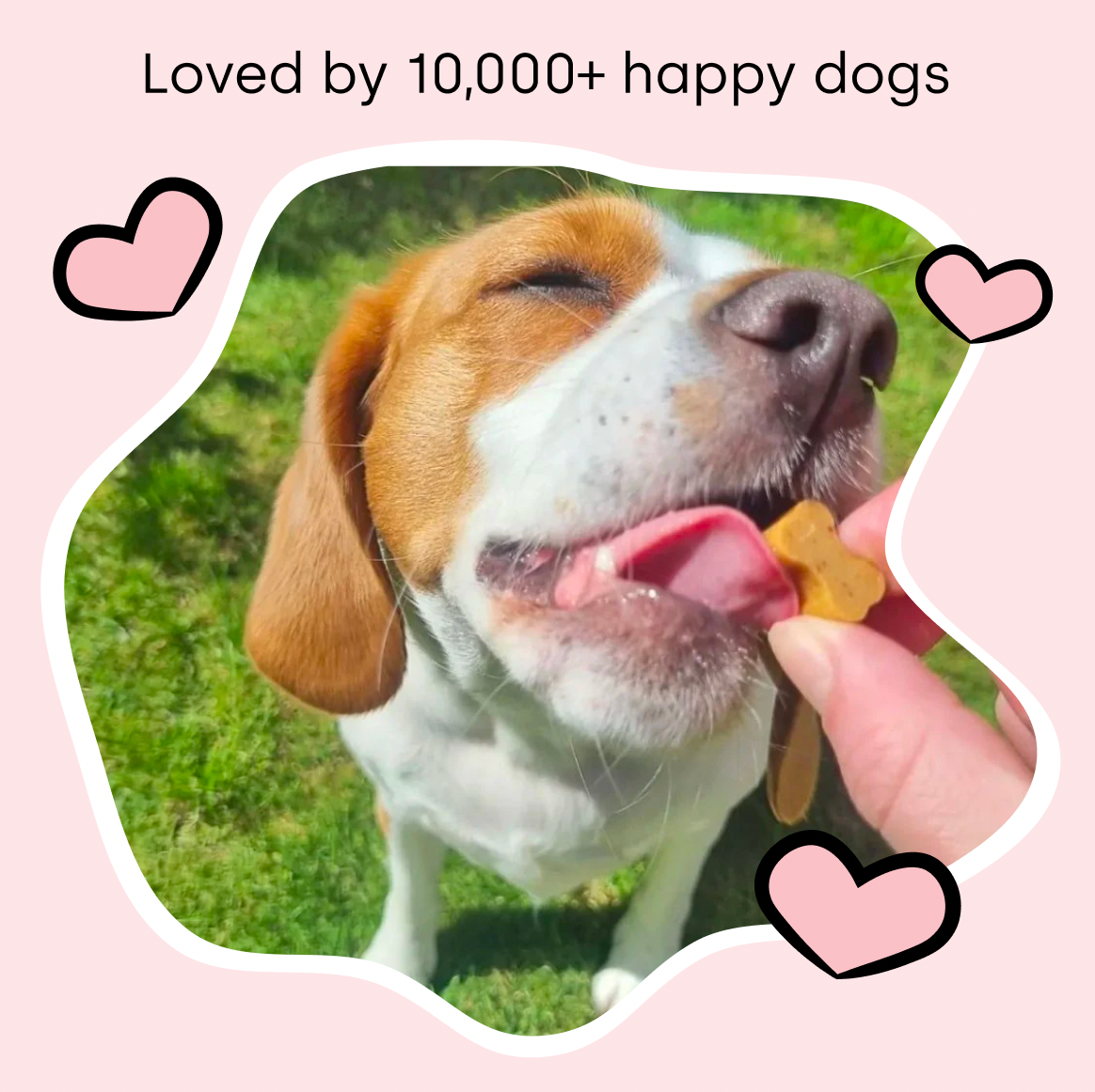 As you may know, supplements can take time to produce the full benefits for your dog, which is why we recommend long-term use. To help you stay consistent, we offer subscriptions of up to 65% off plus freebies, plus access to our award-winning app which gives you £1,000 worth of free accident & injury insurance for your dog, 24/7 video vets, health tracking, rewards and so much more.