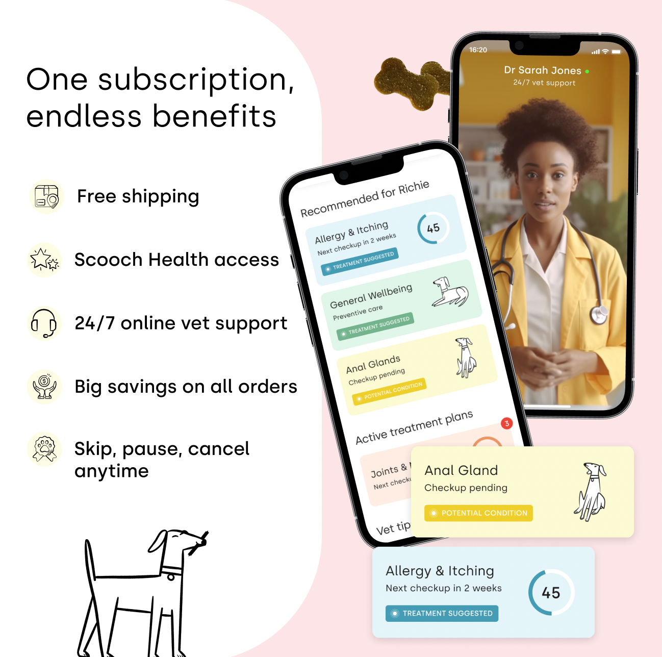 Yes! When you subscribe you unlock free access to our award-winning app, Scooch Health. Where you can track your dog's health, fetch free accident & injury insurance, chat with 24/7 video vets and so much more.