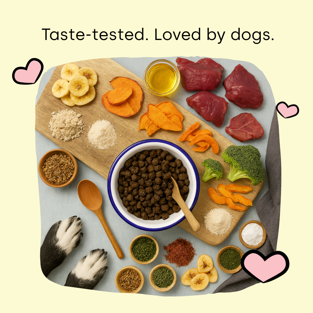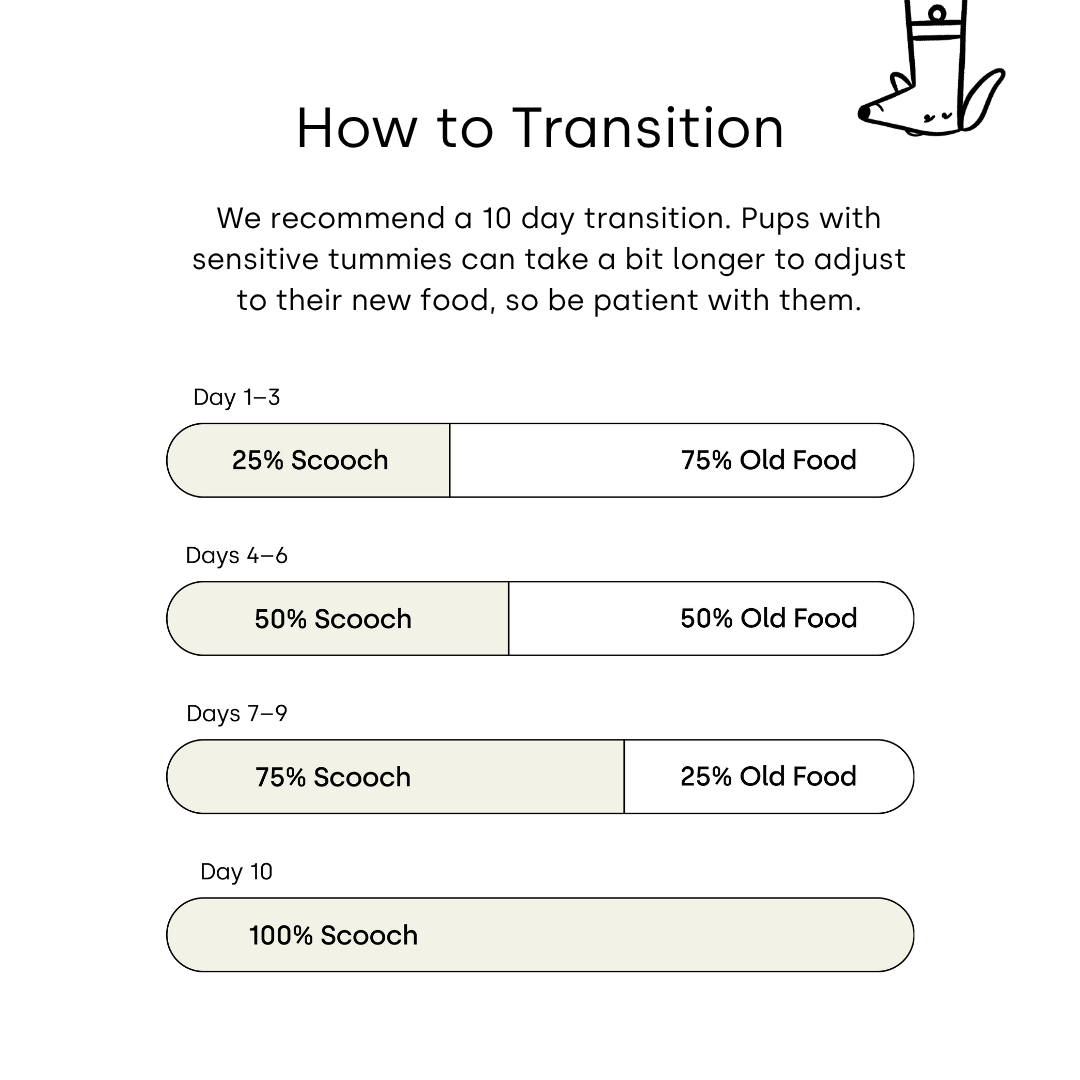 Scooch’s premium dog food is air dried at low temperatures to preserve natural nutrients, giving you all the benefits of fresh food, without any of the hassle. No fridge or freezer space required, simply scoop and serve.