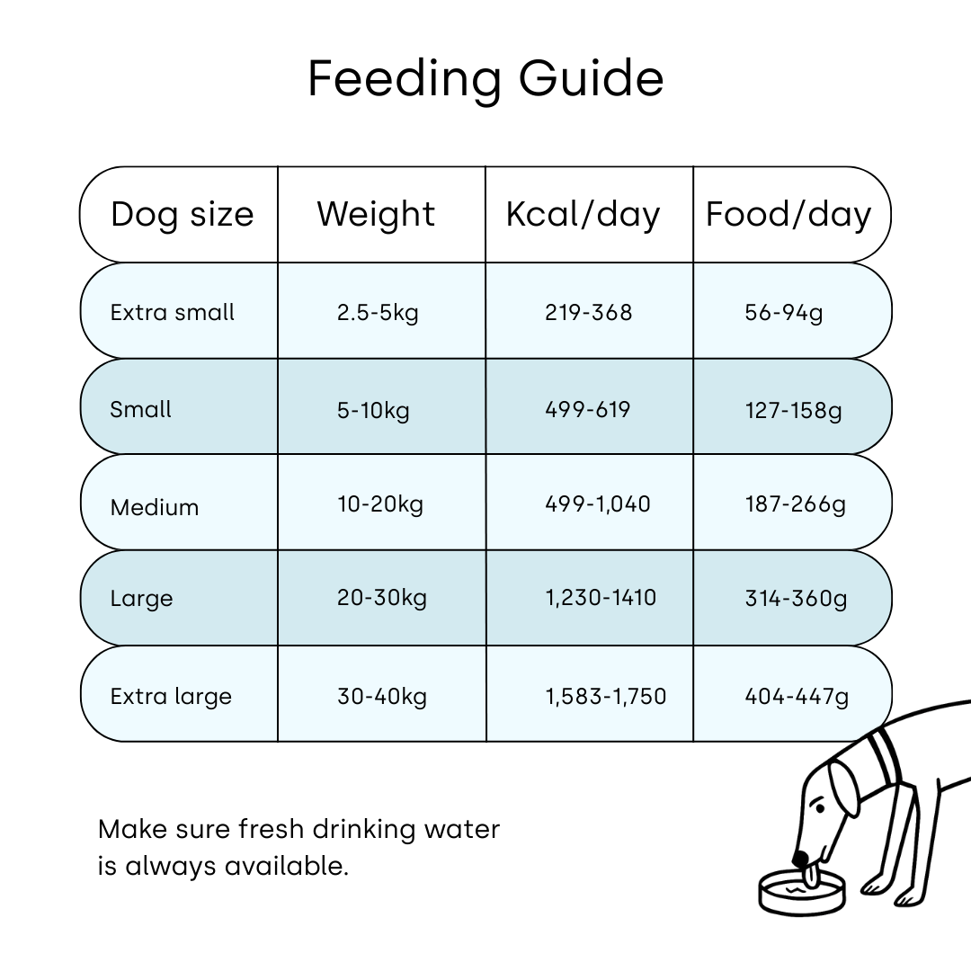Feeding guideSmall less than 9kgs - up to 5 treats