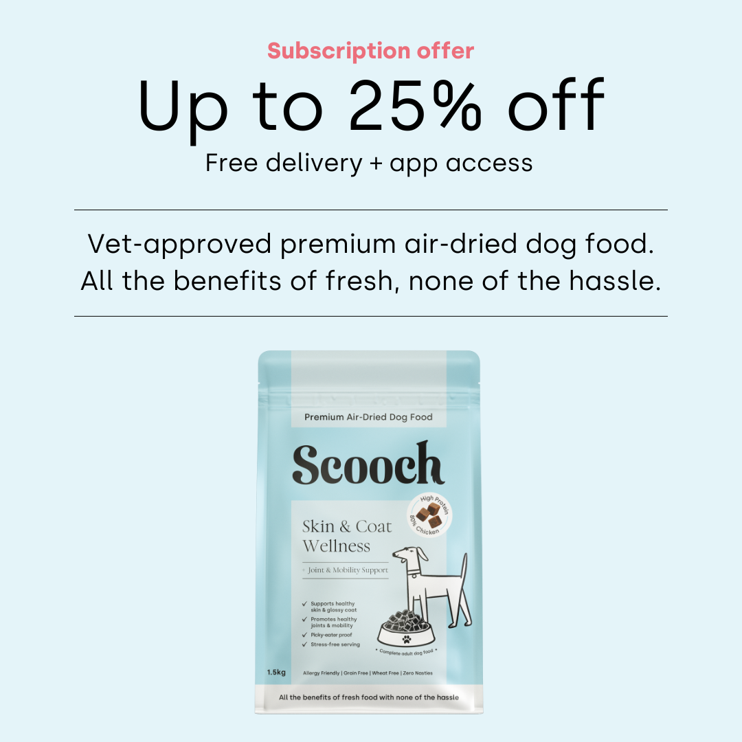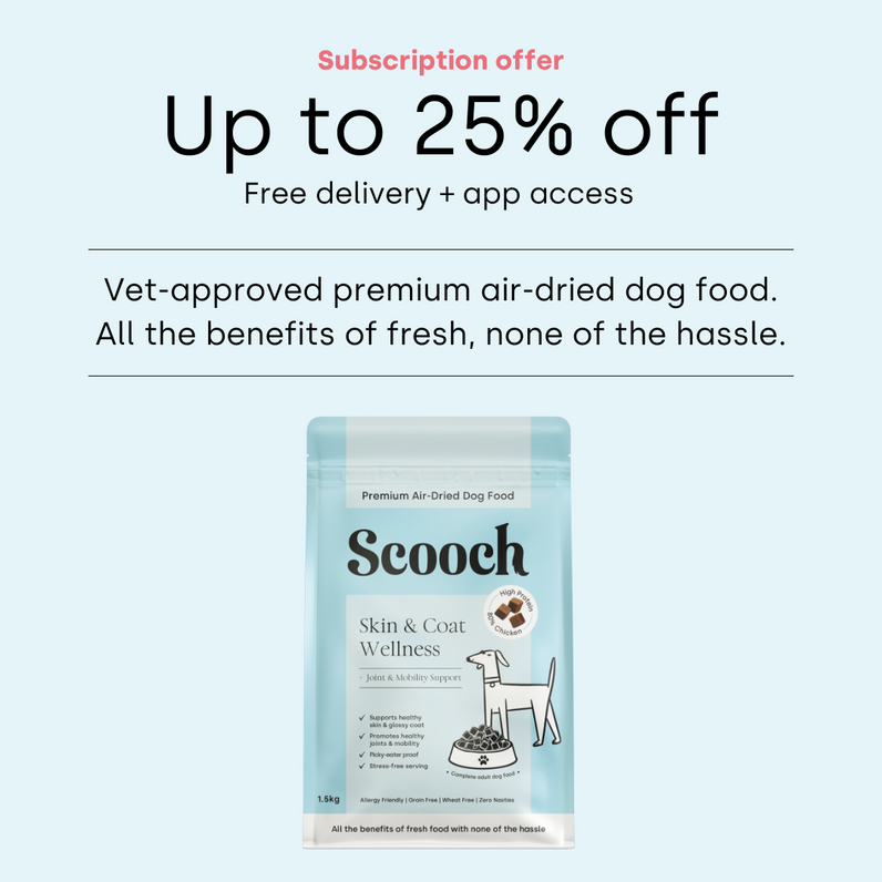Why subscribeTraining treats are an essential part of your dog’s day-to-day routine, from 5 minute training sessions to rewarding them for good behaviour when out and about, which is why we recommend long-term use. To help you stay consistent, we offer subscriptions of up to 30% off, plus free access to our award-winning app to support you and your dog with 24/7 video vets, health tracking, rewards and so much more.We wanted to take that peace of mind to a whole new level, which is why you’ll also unlock £1,000 worth of free accident & injury insurance for your dog when your subscription is above £25 in value - yes you can mix and match any products!
