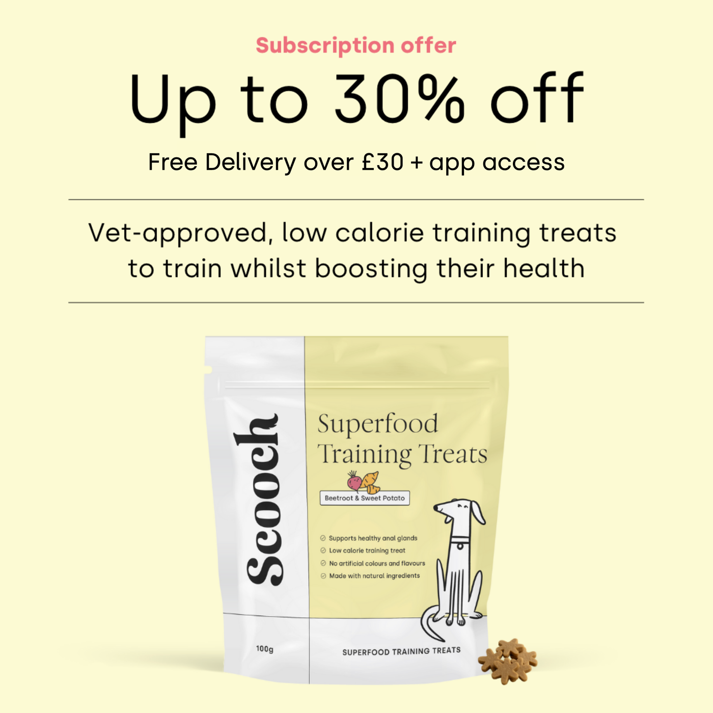 Scooch’s superfood training treats have been vet formulated to provide a clinically proven blend of ingredients to help make training sessions go the extra mile, supporting their immune system, digestion and skin health.